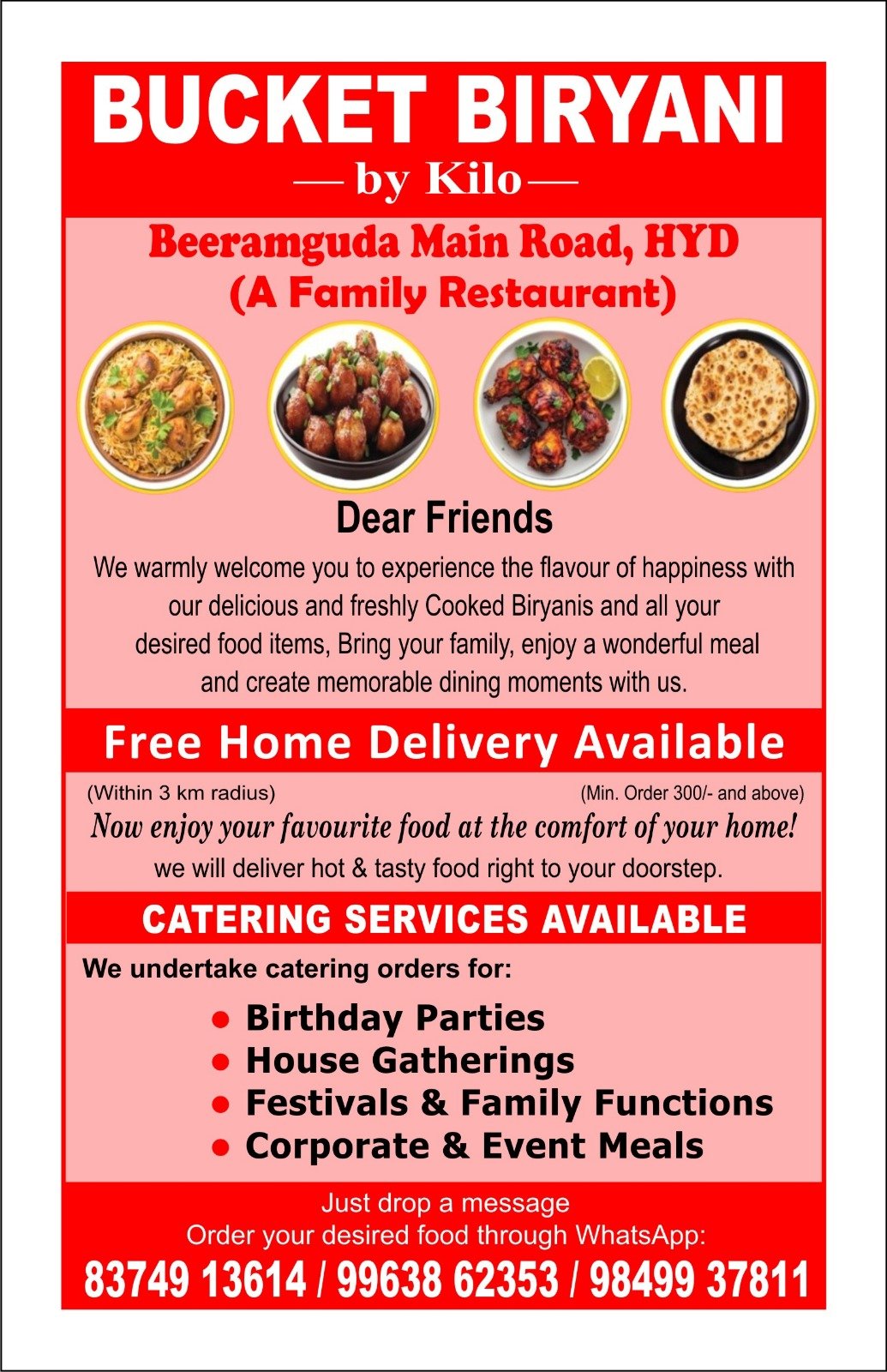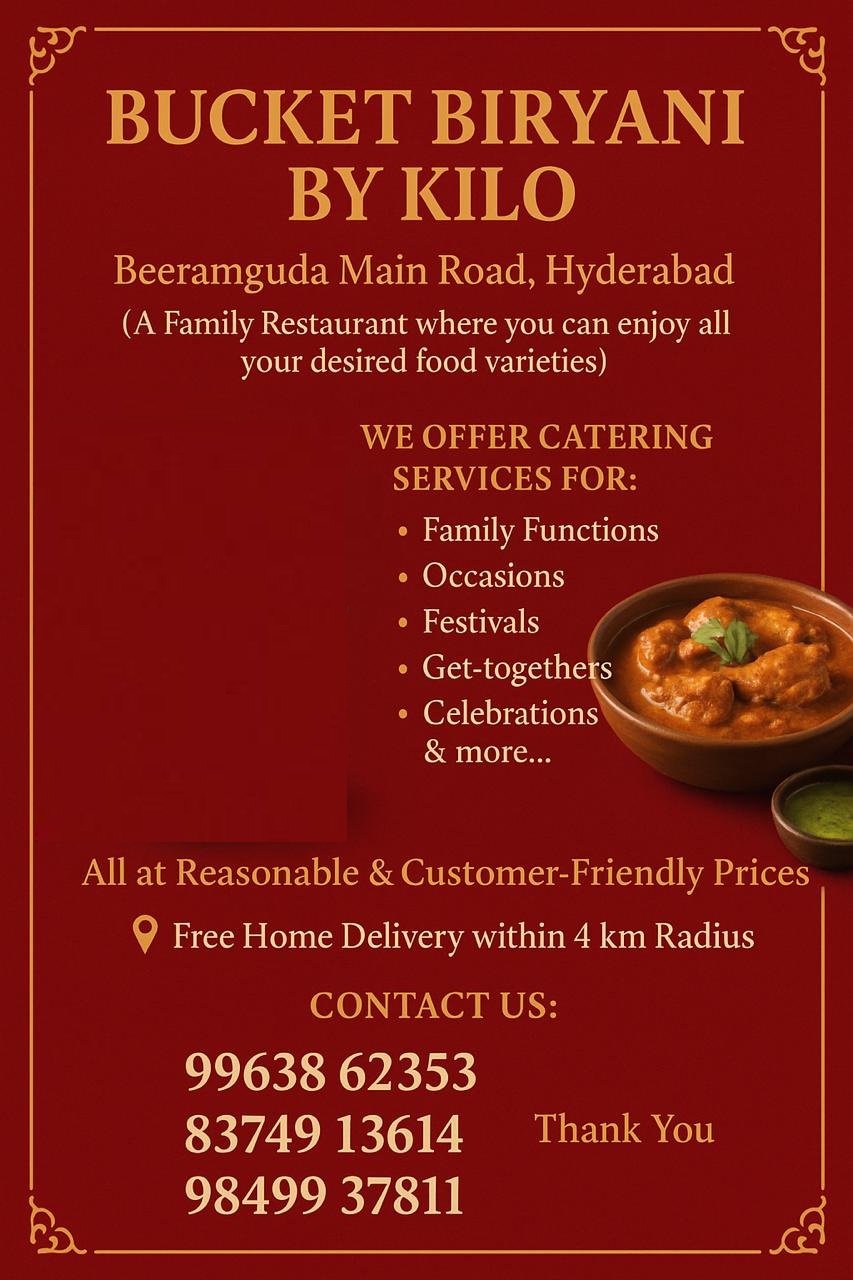 BUCKET BIRIYANI BY KILO, BEERAMGUDA, HYDERABAD